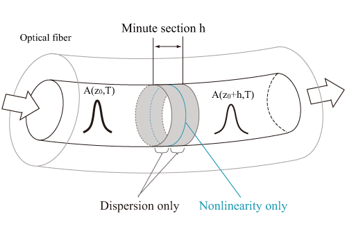 伝搬方程式である非線形シュレディンガー方程式は非線形偏微分方程式であり、一般的に解析的な解を求めることができない。従って、光ファイバーにおける非線形光学効果を理解するために数値解析が用いられている。ここでは数値計算方法として、スプリットステップフーリエ法を取り上げ、光ファイバー中のパルスの振る舞いの解析方法を説明する。スプリットステップフーリエ法は高速フーリエ変換のアルゴリズム(FFT)を用いているために、他の大部分の解析法に比べて相対的に高速な解析が可能となる。