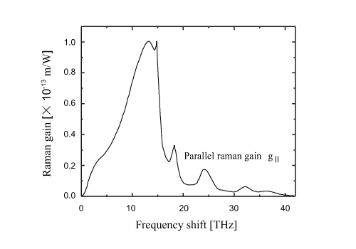 誘導ラマン散乱 – ラマン利得スペクトル、SRS閾値